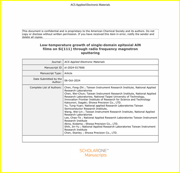 2024/10月 與儀科中心聯合發表 : 在ACS Applied Electronic Materials Journal投稿論文